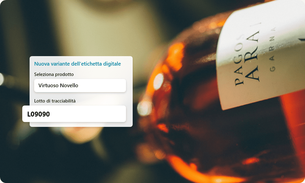 Gestisci facilmente le modifiche alle bottiglie senza dover ristampare le etichette. Crea una variante nel pannello di controllo e indica il lotto di tracciabilità corrispondente.